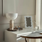 Hartowiec Mini to mniejsza wersja naszego lustra Hartowiec, zaprojektowana jako lusterko kosmetyczne do codziennego użytku i elegancki element wnętrza. Rama w klasycznej bieli ma falowany, lekko asymetryczny kształt, co nadaje lustru nowoczesny i oryginalny charakter. Model Hartowiec Mini świetnie sprawdzi się na półce, toaletce czy stoliku nocnym - wszędzie tam, gdzie chcesz mieć swoje ulubione przedmioty pod ręką.